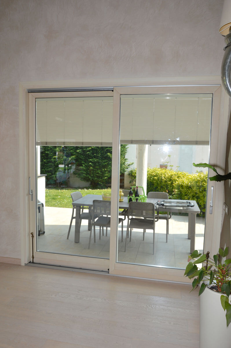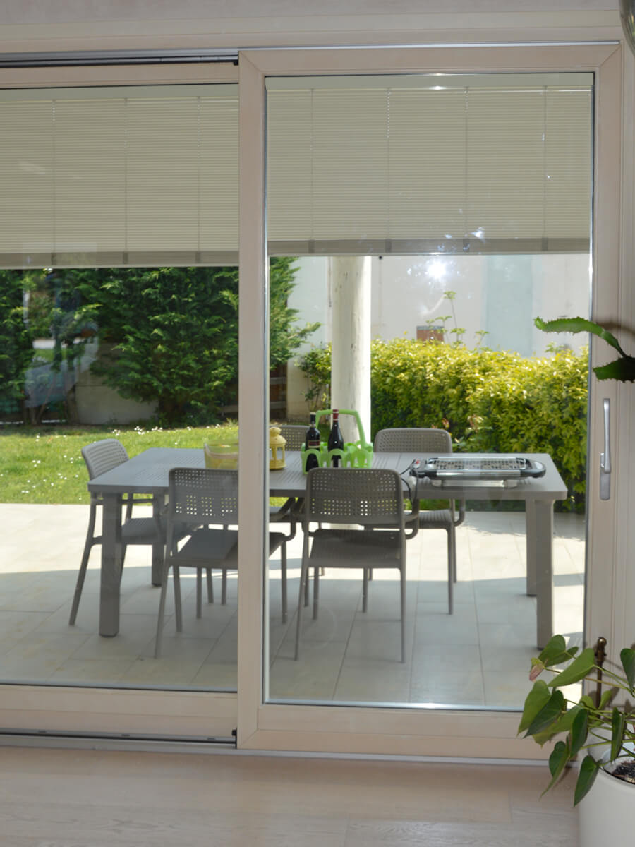 All'interno del vetrocamera dell'alzante scorrevole è presente una Venezia motorizzata. Le caratteristiche di questo sistema garantiscono assoluta protezione da sporco, polvere e agenti atmosferici, dunque non richiedono manutenzione.
