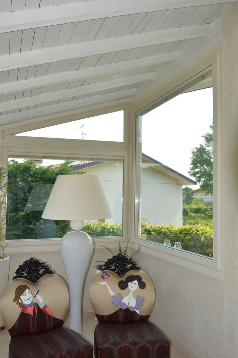 I Serramenti sono in Legno Laccati Bianco. A differenza dell’impregnatura, il laccato su un serramento in legno protegge maggiormente l’infisso e richiede minor manutenzione. Il bianco è un colore utilizzato molto nelle nuove abitazioni per dare un tocco di modernità alla casa, senza rinunciare al calore del legno.